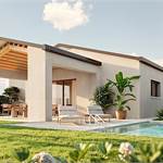 The villa is entirely on one level and offers bright, spacious, and well-organized living spaces. The open-plan living area, with large windows overlooking the private garden, creates an elegant connection between indoor and outdoor spaces, perfect for relaxation and social gatherings.