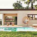 Outside, the private garden with a covered porch and swimming pool provides an ideal space to enjoy outdoor living in complete tranquility. The covered porch overlooking the pool is perfect for relaxing moments.