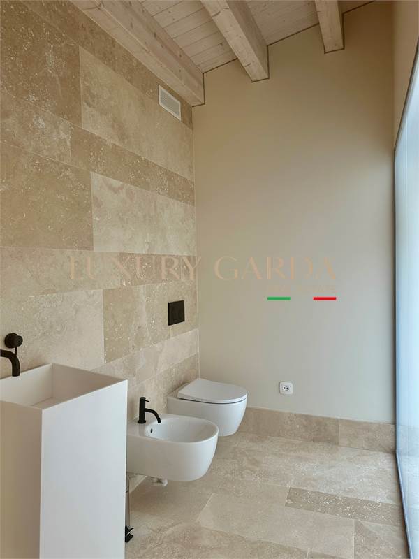 Nella zona giorno troviamo la cucina realizzata su misura,ampio soggiorno, zona pranzo, un bagno per gli ospiti ed un locale tecnico. Sullo stesso piano troviamo la zona notte composta da una suite con bagno privato e cabina armadio e due camere singole con bagno. Adiacente alla zona giorno si trova una terrazza con vasca idromassaggio che gode di massima privacy. Sul tetto è stata realizzata la seconda terrazza dalla quale si gode una vista dominante e mozzafiato sul lago e sulle montagne. Finiture di altissimo livello, riscaldamento a pavimento, aria condizionata, pompa di calore elettrica autonoma, predisposizione impianto di allarme e domotica. Nel piano interrato garage doppio e garage singolo di proprietà.