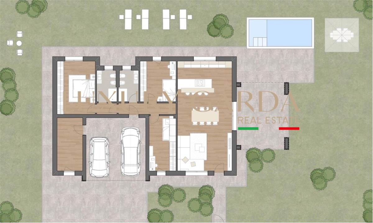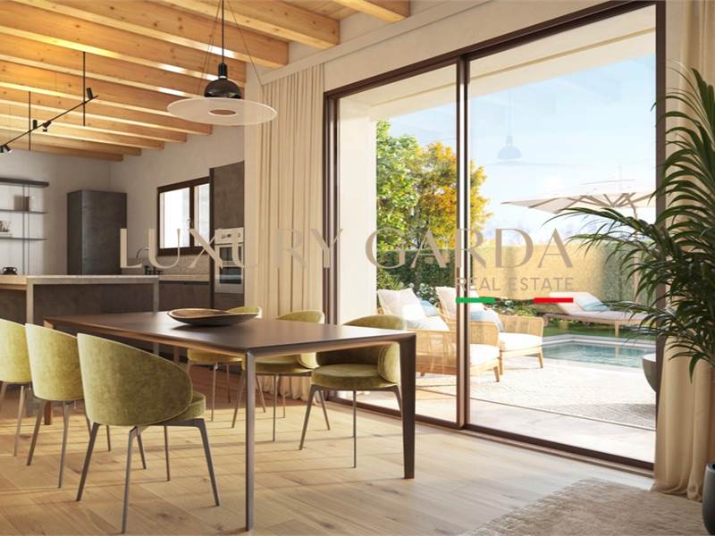 A Desenzano del Garda nasce una bellissima Residenza, in una delle zone più tranquille e riservate, un esclusivo progetto composto da tre ville singole dal design contemporaneo, pensate per garantire privacy, comfort ed elevata efficienza energetica. La villa si sviluppata interamente su un unico livello, offre ambienti luminosi, spaziosi e ben distribuiti. La zona giorno open space, con grandi vetrate sul giardino privato, crea un elegante dialogo tra interno ed esterno ed è perfetta per momenti di relax e convivialità. La zona notte comprende una suite matrimoniale, due camere singole e due bagni finestrati dal design moderno. All’esterno, il giardino privato con portico coperto e piscina regala uno spazio ideale per vivere la casa all’aperto in totale tranquillità. Il portico coperto, affacciato sulla piscina, è uno spazio ideale per vivere momenti di relax. Realizzata in Classe Energetica A4, la villa garantisce massimo comfort, tecnologie all’avanguardia e consumi ridotti. Completano la proprietà garage doppio e posto auto esclusivo.